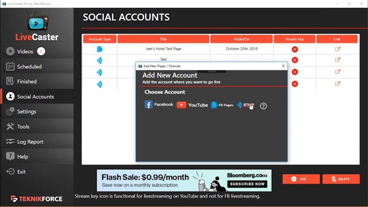 This windows based app allows users to go live with pre-recorded videos on Facebook & YouTube and also supports multiple social media accounts.