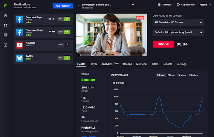 With robust support for over 40 streaming sites and flexible plans to fit any need, Livepush is the easiest way to broadcast events to the largest possible audience across multiple platforms.