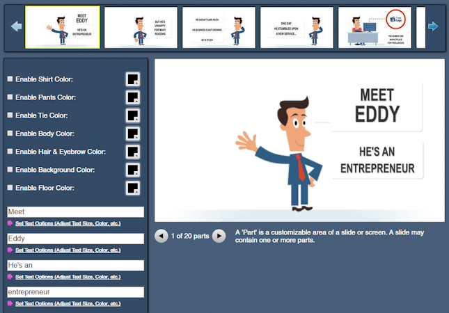 MakeWebVideo is an online program for creating and editing videos with professional graphics and designs, which provides editable templates for developing multiple video styles, including trailers, opening vignettes, promotional, institutional, explainer videos, and more. In order to begin the creation process with MakeWebVideo, simply select a template and customize it by adding photos, text, and music. For testing the program's capabilities, it is possible to create a preview of the video. In addition, the program enables users to export videos in different sizes, and users can download them in MP4 and WebM formats.
