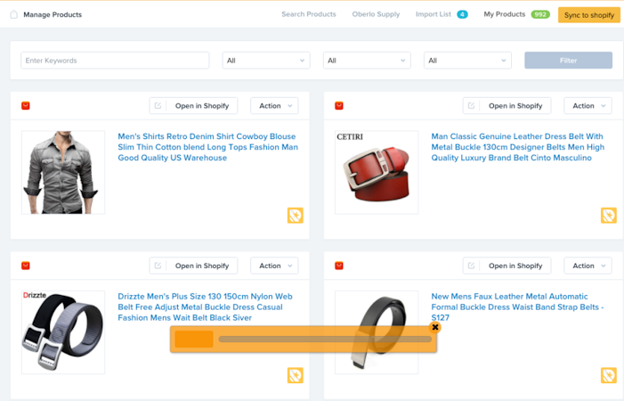 Oberlo’s user interface