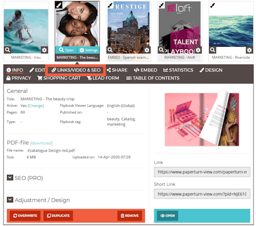 PaperTurn is a cloud-based software, designed to help organizations transform PDFs into a variety of flipbooks such as catalogs, reports, magazines, brochures and eBooks, and user guides. The application enables supervisors to secure flipbooks by adding usernames and passwords, control access through IP whitelisting and enable or disable share, print and download features. Professionals can customize designs by applying page turning effects, inserting logos, adding color to flipbook viewer, and changing language. PaperTurn's shopping cart functionality allows businesses to sell products, collect orders and maintain shopper's wish lists. Using the lead generation tools, marketing teams can collect details from lead capture form and export the data to CRM or email marketing system. PaperTurn provides integration with third-party platforms Google Analytics and Tag Manager. With the editor tool, team members can add hyperlinks, videos, images and a personalized color palette. It helps build SEO-friendly pages, allowing employees to manage and customize page titles, keywords, descriptions, and more.
