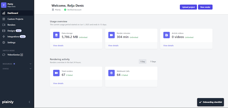Plainly provides an intuitive web application interface that gives users control over every aspect of their video workflow. The platform supports team collaboration through its team management feature, allowing members to work together efficiently on projects. For enhanced workflow optimization, Plainly offers an After Effects plugin that establishes direct communication between After Effects and the platform, streamlining the setup process and file management. The system accommodates both bulk video generation and one-off video creation, with preview capabilities that allow users to confirm data inputs and design elements before final rendering.