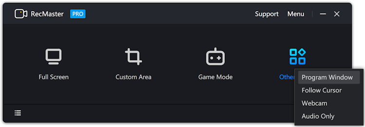 - Record videos and audios with/without a webcam & voiceover in multiple recording modes