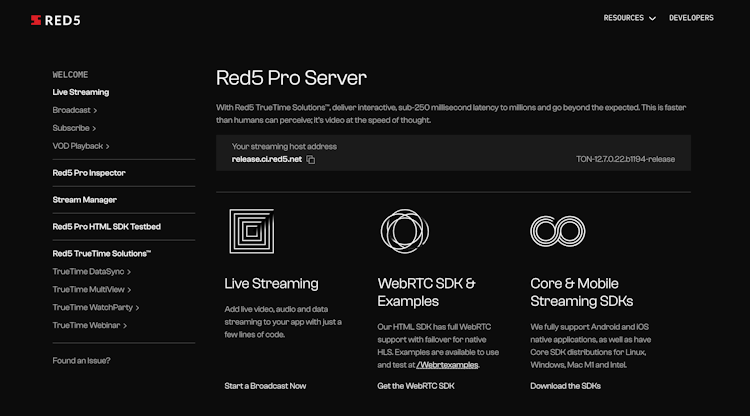 Red5 Pro is a real-time video streaming solution built for developers, startups, and enterprises that need ultra-low latency streaming across different platforms. It supports WebRTC, RTMP, RTSP, HLS, SRT, MPEG-TS, and Zixi streaming protocols for low-latency video delivery that works across Windows, macOS, Linux, and iOS/Android. It can be deployed on-premises or in the cloud.