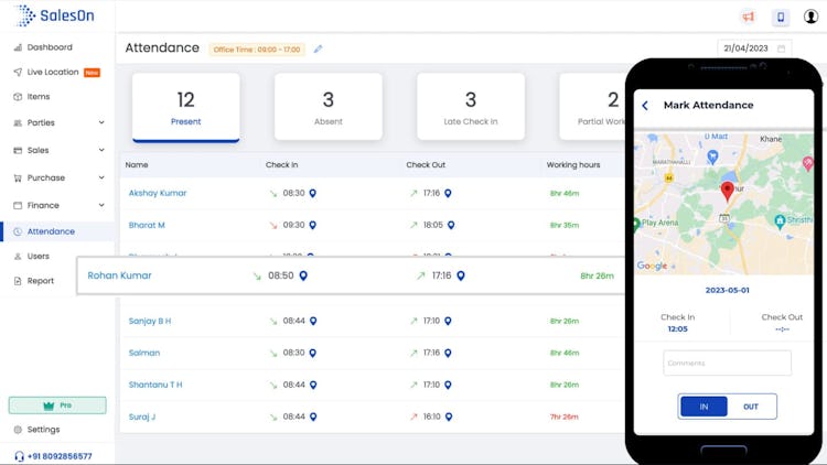 The software includes a suite of features tailored to optimize sales and distribution workflows. Its automatic invoicing system allows users to create invoices, estimates, and delivery challans with multiple template options, supporting both A5 and A4 prints as well as thermal printing capabilities. The platform incorporates inventory management with real-time stock tracking across distributed SKUs and custom field options for attributes like size, color, and batch numbers. Field sales management functionality includes live location tracking of on-field teams via Google Maps integration, route planning, attendance monitoring with geolocation verification, and detailed activity logs that track employee productivity. For distribution businesses, the system offers van sales management with real-time inventory control, invoicing, payment collection on unsettled invoices, and end-of-day summary analytics. The production module automates manufacturing operations through multilevel bill of material functionality, finished goods testing, inventory management for raw materials and finished goods, and work order tracking with cost calculations.