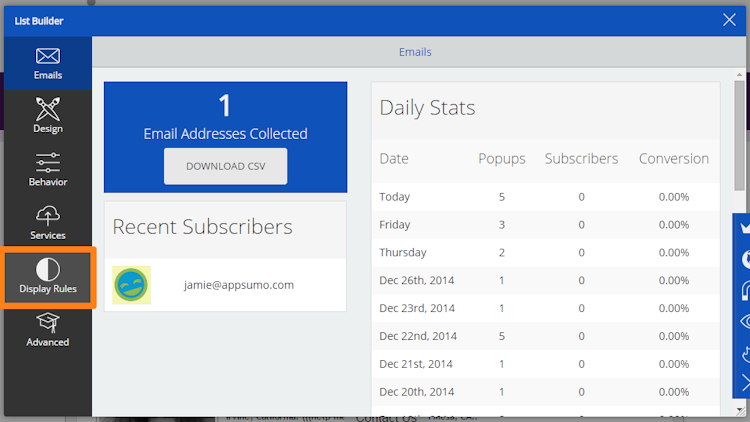 Sumo is an excellent tool to connect your email marketing to your website and design custom call to actions.