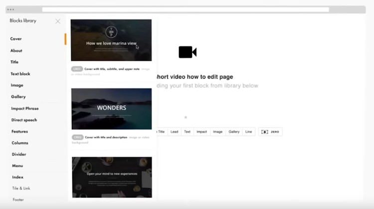 The platform’s core feature set revolves around an extensive library of over five hundred pre-designed blocks covering a wide range of content types such as full-screen covers, typographic sections, image galleries, video backgrounds, and data capture forms. The Zero Block editor permits granular customization by offering complete control over element placement, styling, and responsiveness. Responsive design principles are embedded into the platform to ensure that layouts adapt automatically across desktop, tablet, and mobile formats without additional configuration. The system includes an artificial intelligence based site generation tool that can produce initial page structures, copy suggestions, and image selections based on simple textual descriptions.