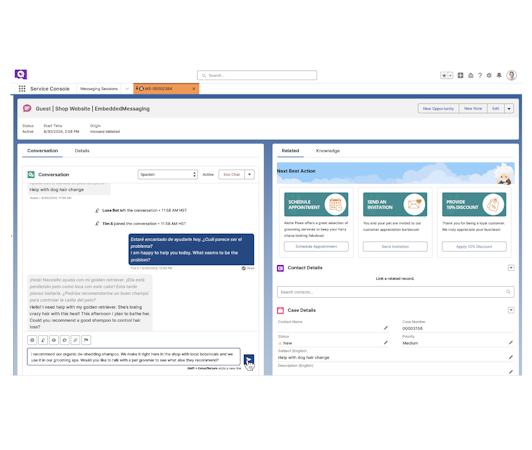 Translation Studio uses various tools such as DeepL, AWS, Google Translate, Unbabel and Gengo to translate knowledge articles, email templates, HTML, chats, Salesforce metadata and other content. Managers can set up their object, translation engine and target language to automate interpretation processes. Businesses can also leverage artificial intelligence (AI) and natural language processing (NLP) technologies to identify actionable decisions and areas of improvement.