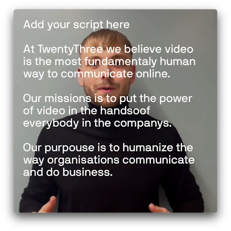 TwentyThree Personal is the first Personal Video tool for companies, which enables everyone on your team to create and send video as easily as email. Record & send engaging videos in-browser – no software to install and no external equipment. Create videos collaboratively with other members of your team, keep every video in a Video Library everyone on the team can access, integrate with your CRM to create automated video touchpoints, create personalized campaigns to outreach at scale, and much more.