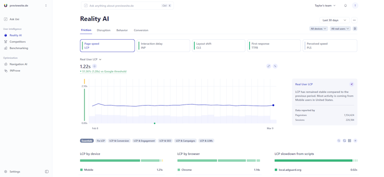 The platform uses technologies such as Reality AI to automatically analyze performance data and provide actionable insights, while Navigation AI and INProve optimizers help accelerate page navigation and improve loading performance. Uxify also helps teams understand how performance impacts conversions, SEO, and user engagement, while detecting regressions and identifying opportunities for improvement.