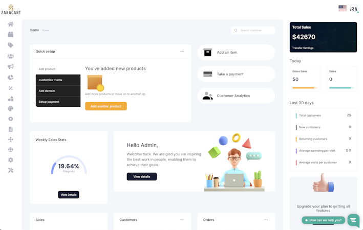 Zaracart provides a dynamic storefront builder and analytics to understand customers, products, and trends with in-depth reports. It also offers SSL certificates, secure shopping carts, and regular updates. Zaracart has built-in SEO tools, marketing integrations, and a suite of promotional features.